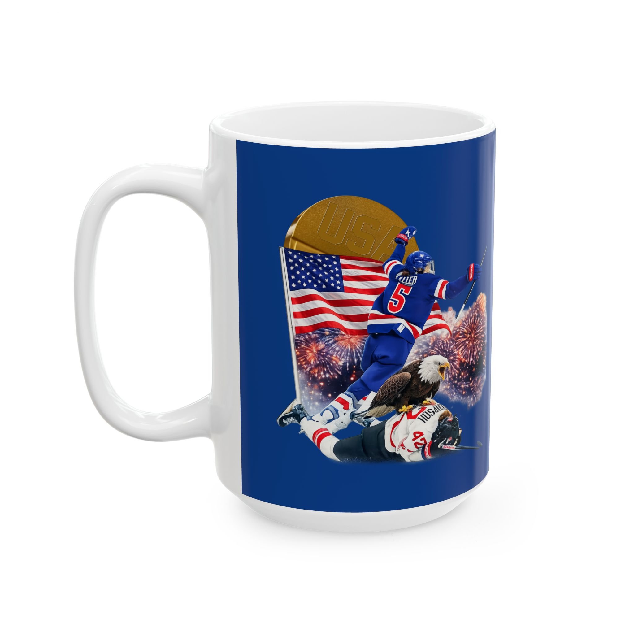 There’s no better way to start your morning than by reliving the greatest rivalry in women’s sports. This high-definition wrap-around mug captures the electric moment the U.S. Women’s National Team secured the gold.