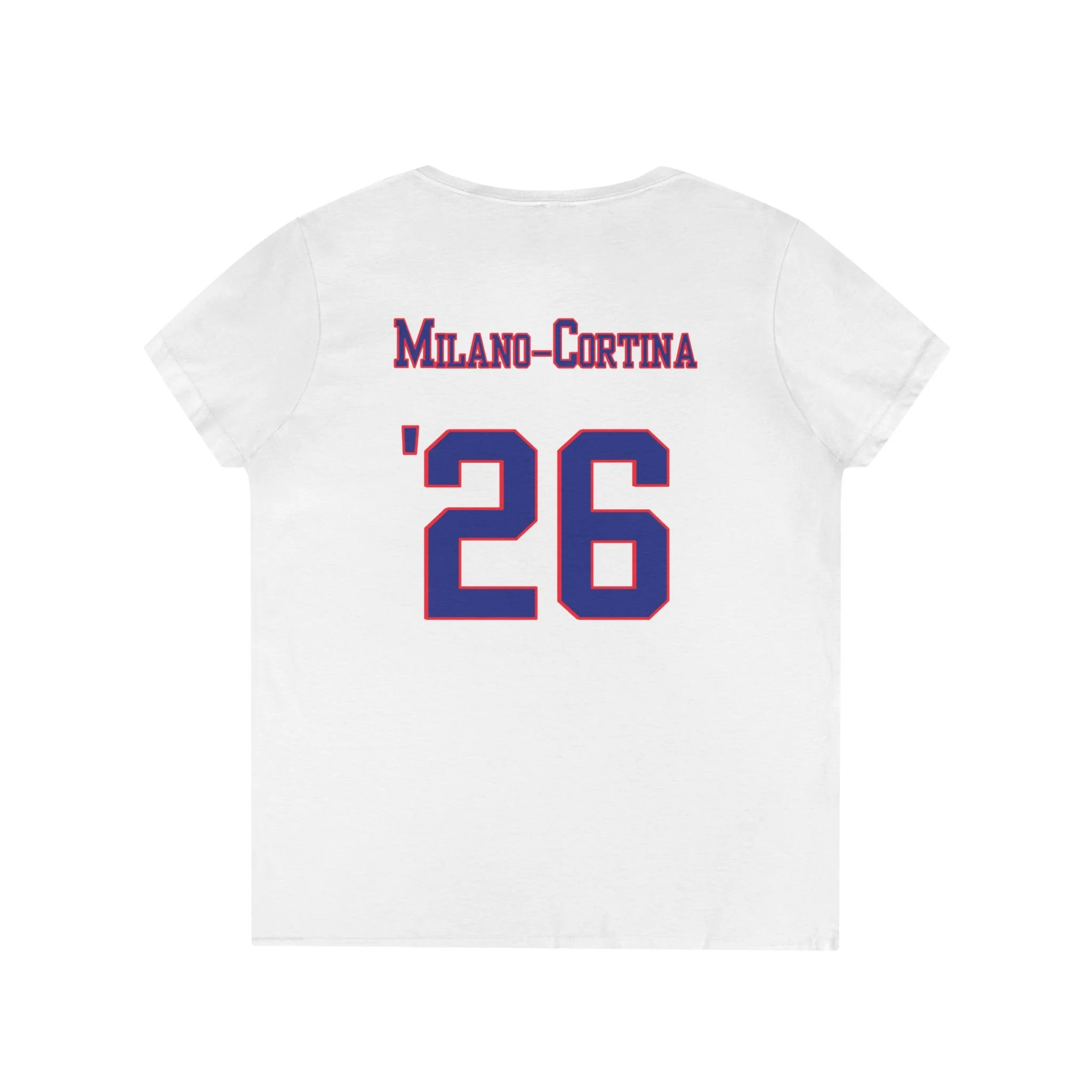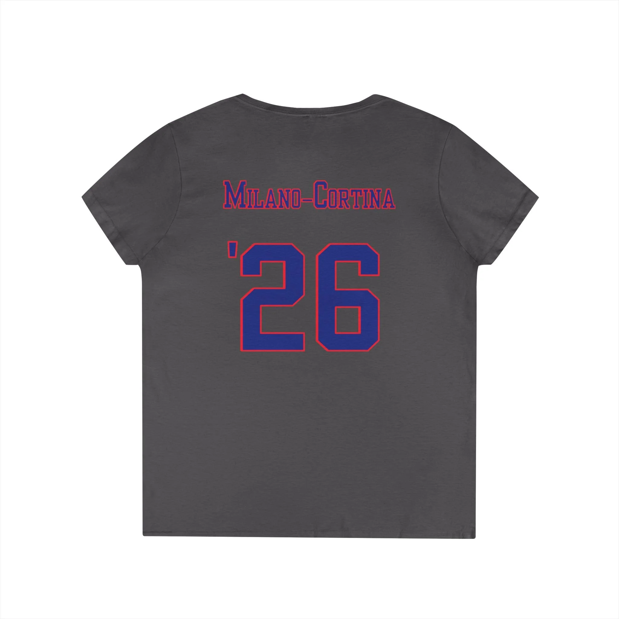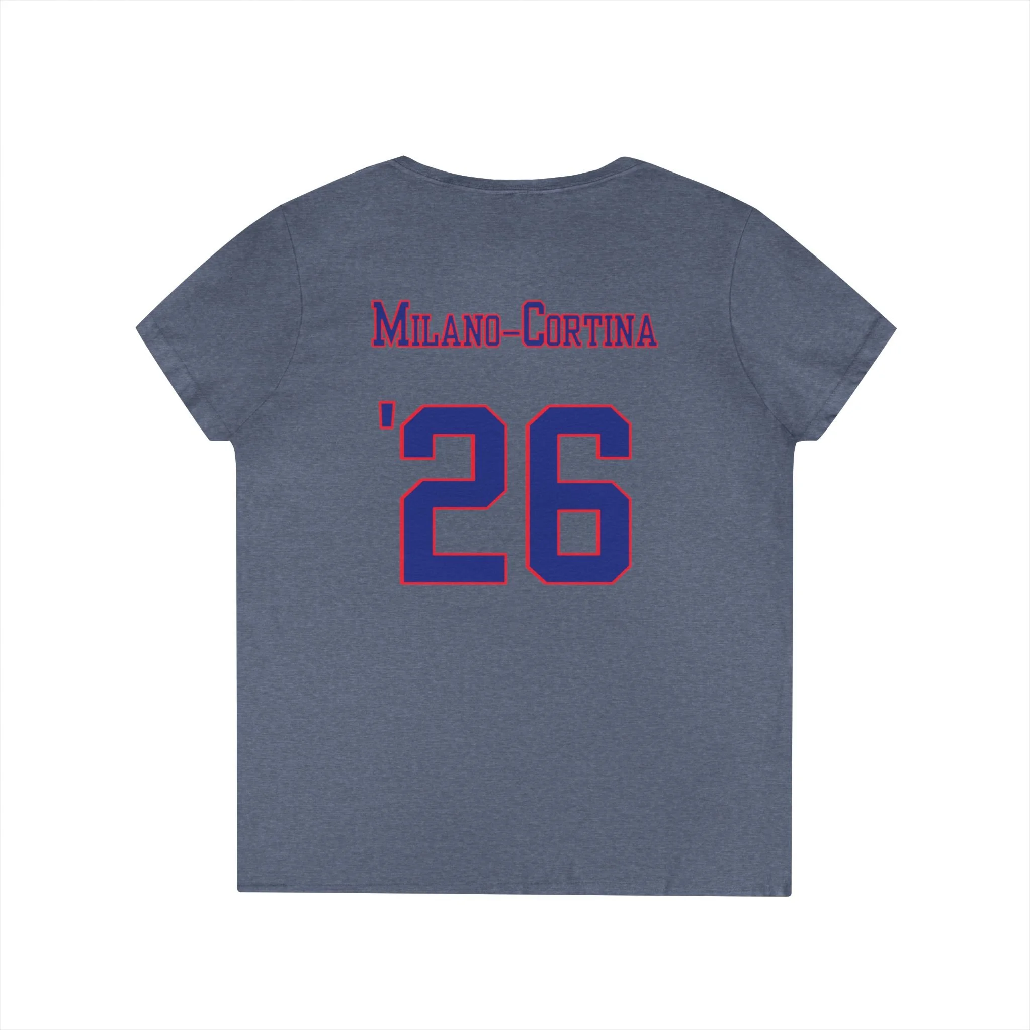 Lightweight and breathable, this V-neck tee carries a confident, athletic spirit. Bold “USA” lettering on the front pairs with a gold medal graphic, while the back channels vintage team jerseys with a place name and a large ’26’—evoking moments of competition, country pride, and winter sports celebration. The semi-fitted cut sits close without clinging, making it easy to wear layered under a jacket or on its own during active days. Soft, smooth cotton drapes cleanly and the ribbed collar, shoulder tape, and reinforced hems keep the shape through many washes. Wear it to watch the games, rep your hometown at gatherings, or remember a meaningful tournament with a design that feels both nostalgic and spirited.