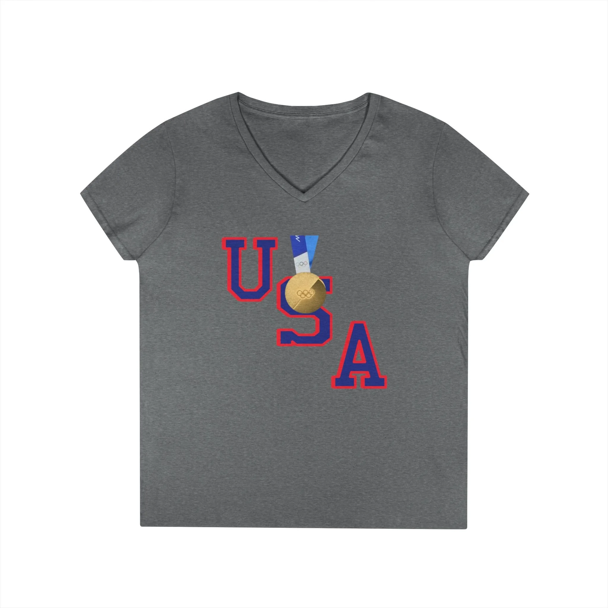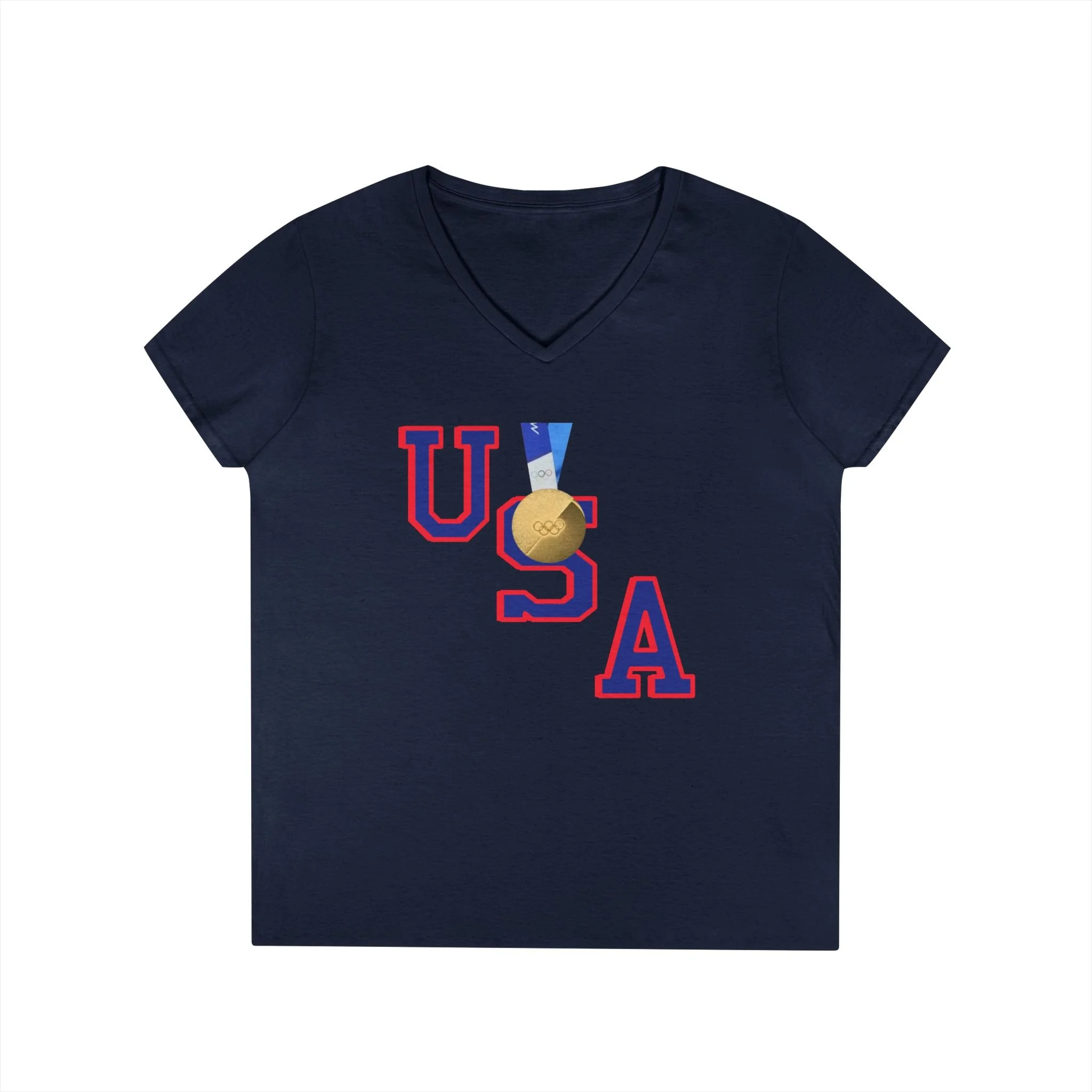 USA Gold Medal V-Neck T-Shirt — Milano‑Cortina '26 Olympic Hockey Team Top